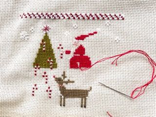 As you can see by the spelling of "favourites," this is a British magazine that I picked up at Joann's. You will also be able to see on the left side of the cover page that these little pieces were designed to be part of an advent piece; I decided to just stitch a few of these as pillows for my red two-tiered tray. I hope to get a few more stitched before Christmas, and if not this year, next year.